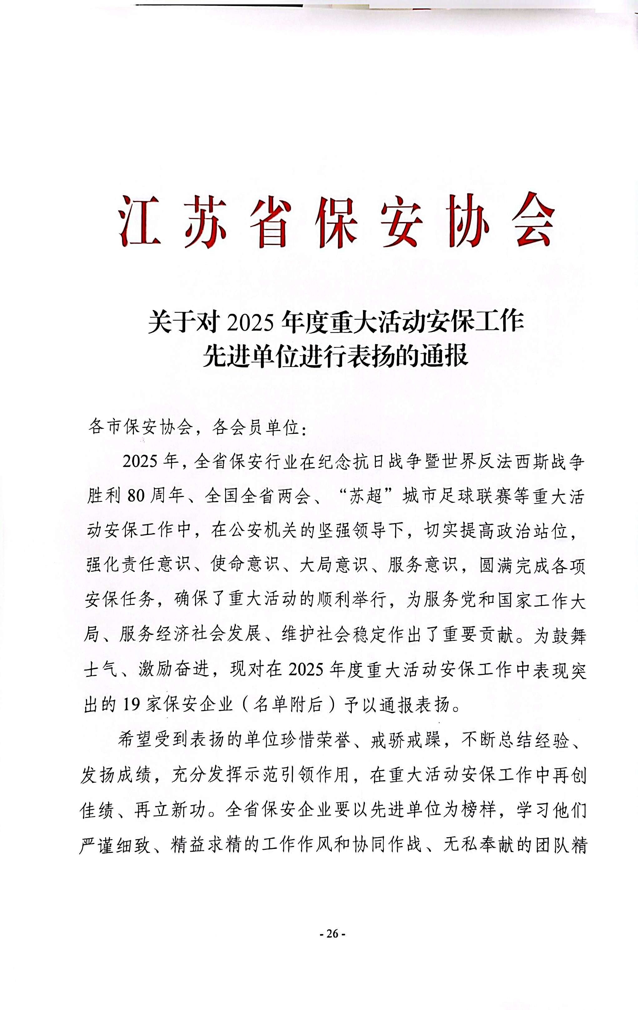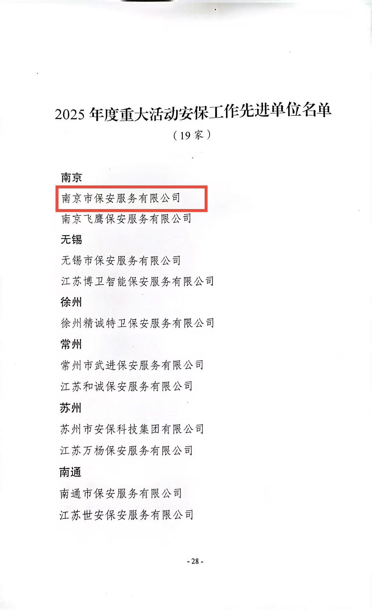 喜報(bào)!南京市保安服務(wù)有限公司榮獲“2025年度重大活動(dòng)安保工作先進(jìn)單位”稱號